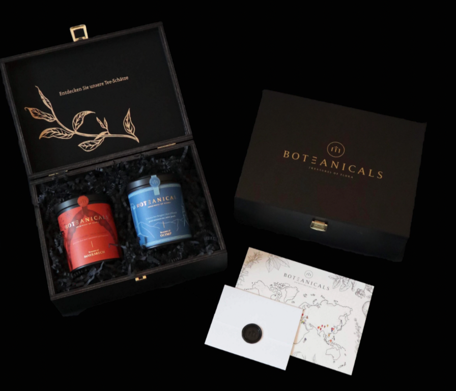 Boteanicals vereint Nachhaltigkeit, Design und Genuss und wurde im November 2019 von Florian Wagner und David Suppes, bekannt aus der ZDF Sendung „Bares für Rares“, in Berlin gegründet. Jede der sorgfältig zusammengestellten Tee-Kompositionen besteht immer aus drei Komponenten: Eine Tee-Sorte oder ein Kraut dient als Basis, eine Blume oder ein Gewürz als ergänzende Komponente und zur idealen Abrundung dient beispielsweise eine Frucht. Jeder Tee enthält ausschließlich hochwertige Bio-Zutaten und wird in liebevoller Handarbeit hergestellt.
