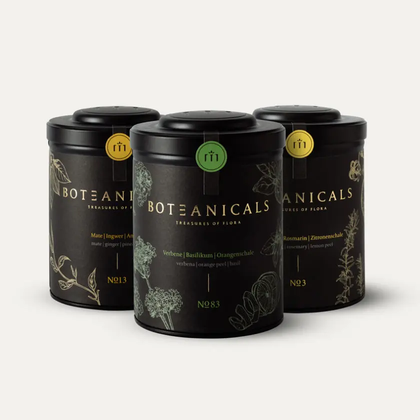 „Unsere Kompositionen bestehen immer aus drei Komponenten: eine Tee-Sorte oder ein Kraut dient als Basis, eine Blume oder ein Gewürz als ergänzende Komponente und zur idealen Abrundung dient beispielsweise eine Frucht. All unsere Tees enthalten ausschließlich hochwertige Bio-Zutaten und werden in liebevoller Handarbeit hergestellt. BOTEANICALS steht für luxuriösen Teegenuss, der alle Sinne anspricht und vereint Nachhaltigkeit mit Design. Unser Ziel ist es mit außergewöhnlichen Kombinationen der verschiedenen Komponenten und im Einklang mit der wissenschaftlichen Food-Pairing-Methode, noch nie dagewesene Geschmackserlebnisse in der Tee-Welt zu kreieren.“, so Florian Wagner.