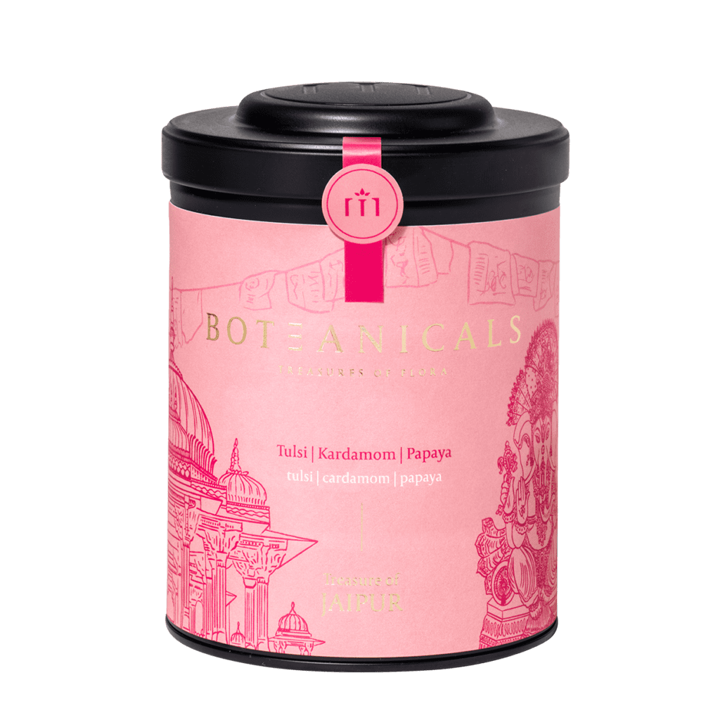 Mit der „Treasures of the World“ Kollektion reist BOTEANICALS auf der Suche nach neuen Tee-Schätzen um die Welt. Die Reise begann 2020 mit „Treasure of Marrakech“ in Marrokko und führte 2021 mit „Treasure of Olymp“ nach Griechenland. In diesem Jahr nimmt BOTEANICALS nun Teeliebhaber:innen mit auf eine geschmackliche Reise nach Jaipur in Indien.