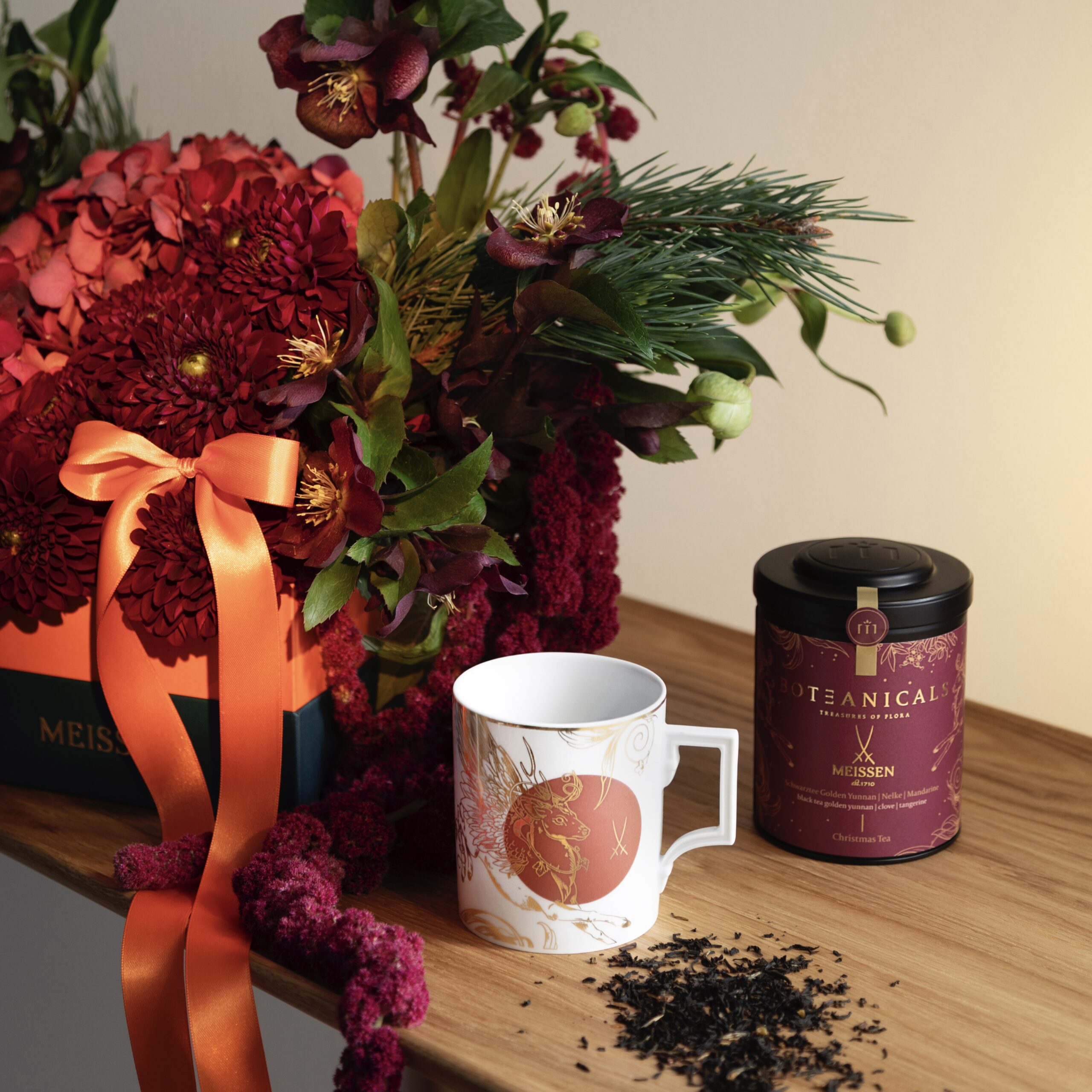 Der Peryton, der in Legenden für Eleganz und Majestät steht, schmückt das rot-goldene Design dieser limitierten Weihnachts-Edition und verleiht jeder Tasse eine festliche Aura. Die Teekomposition selbst vereint Golden Yunnan Schwarztee mit würzigen Nelken und fruchtiger Mandarine – eine harmonische Balance aus Wärme und Frische, die an die Düfte und Geschmäcker der Weihnachtszeit erinnert.