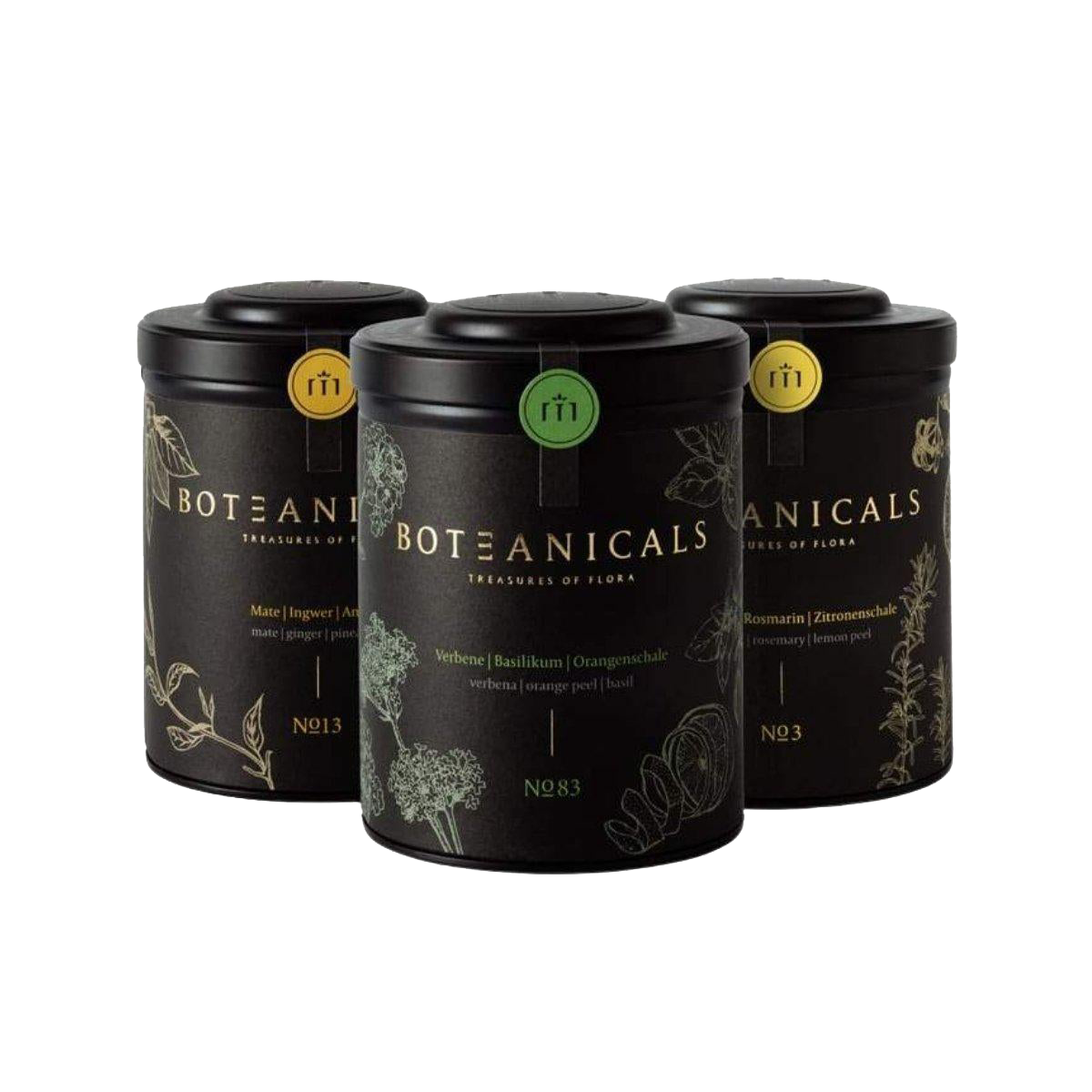 Dieses Set bringt die Sonne in die Tasse! No. 3 ähnelt einem herrlichen Spaziergang durch einen mediterranen Kräutergarten, No. 13 gleicht einer Reise durch die tropisch-exotischen Regionen dieser Erde und No. 83 ist die lebendige Erinnerung an einen wunderschönen Sommertag.
