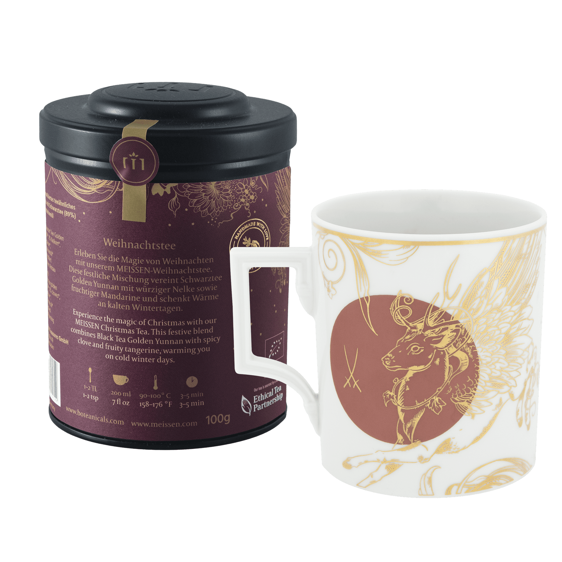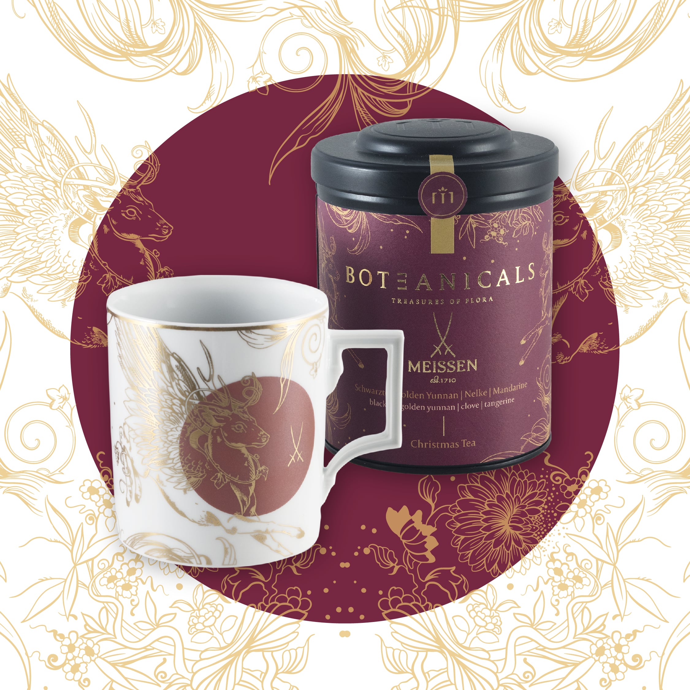 Die Weihnachtszeit erzählt Geschichten von Magie und Tradition, von funkelnden Lichtern und Momenten voller Wärme. In dieser festlichen Stimmung steht der Peryton – ein mythisches Wesen mit dem Körper eines Hirsches und den Flügeln eines Vogels – im Mittelpunkt unserer Christmas-Kollektion. Der Peryton symbolisiert Anmut und Stärke, und seine Legende inspirierte sowohl den Christmas Tea als auch den kunstvoll gestalteten Henkelbecher der Manufaktur MEISSEN.