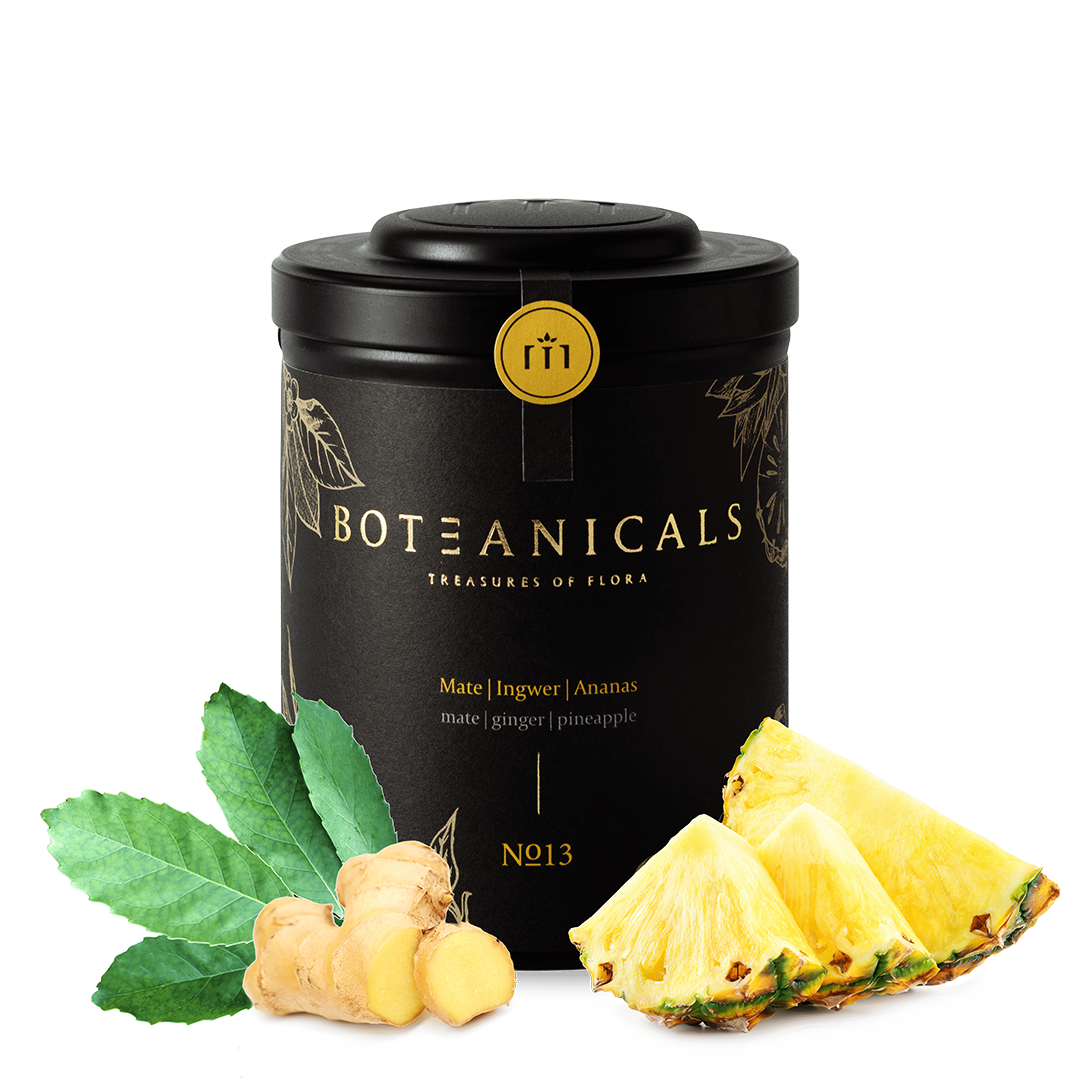 Mate grün* (87 %), Ingwer* (10 %), Ananas* (2 %), natürliches Aroma.