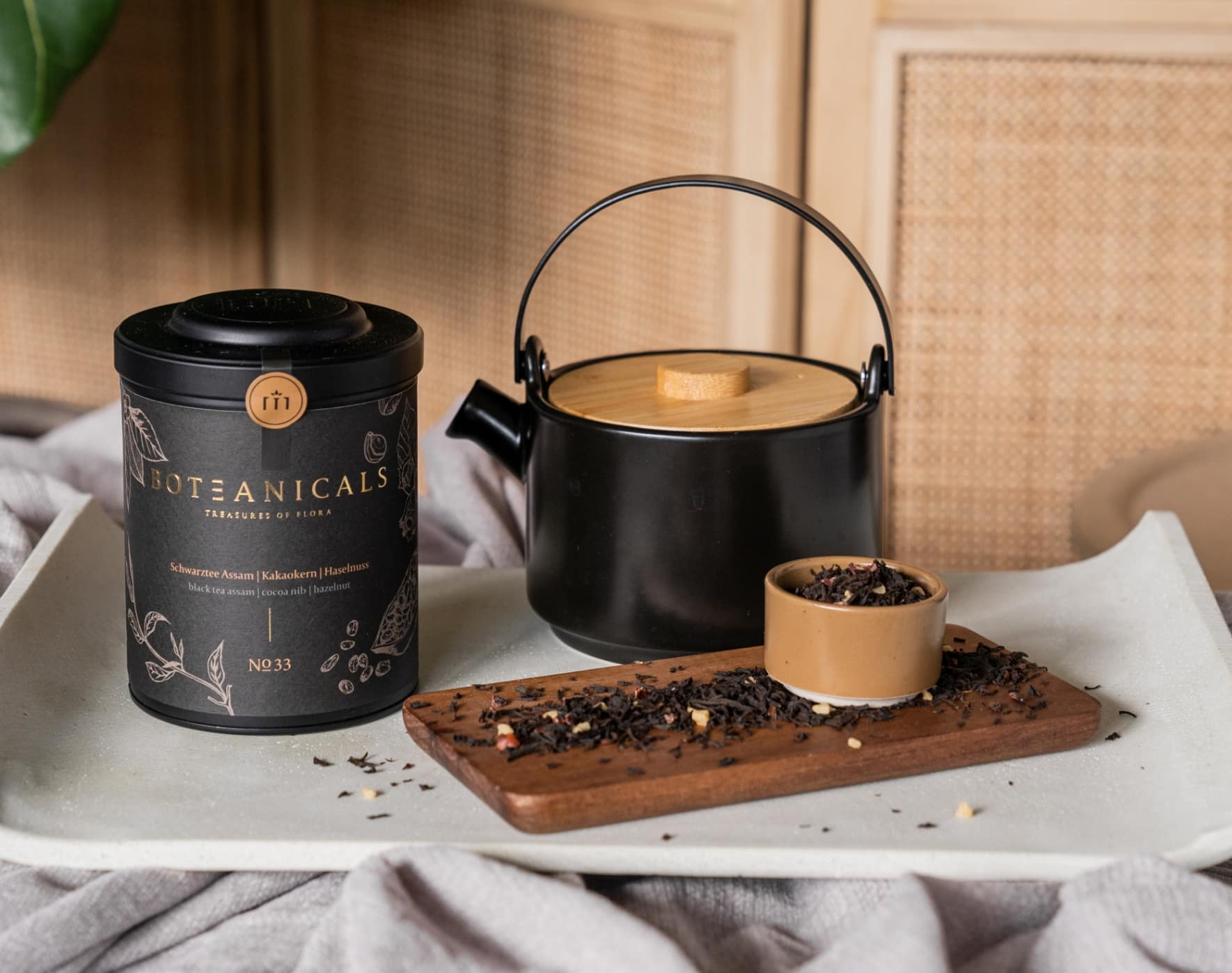 Unsere Tee-Kompositionen sind in edlen Dosen verpackt und dabei komplett plastikfrei. Um dennoch langanhaltende Frische garantieren zu können und den Geschmack zu wahren, haben wir einen praktischen Doppeldeckel für den Aromaschutz integriert. Auch unsere anderen Verpackungsmaterialien bestehen möglichst aus nachhaltigen und recycelten Materialien.