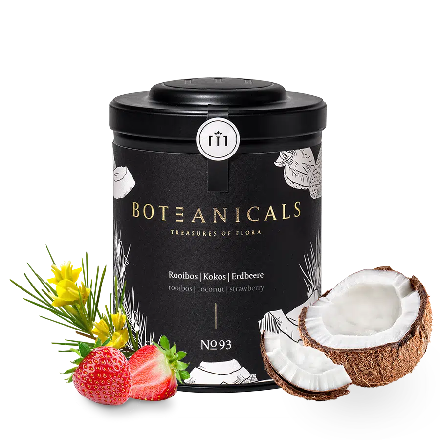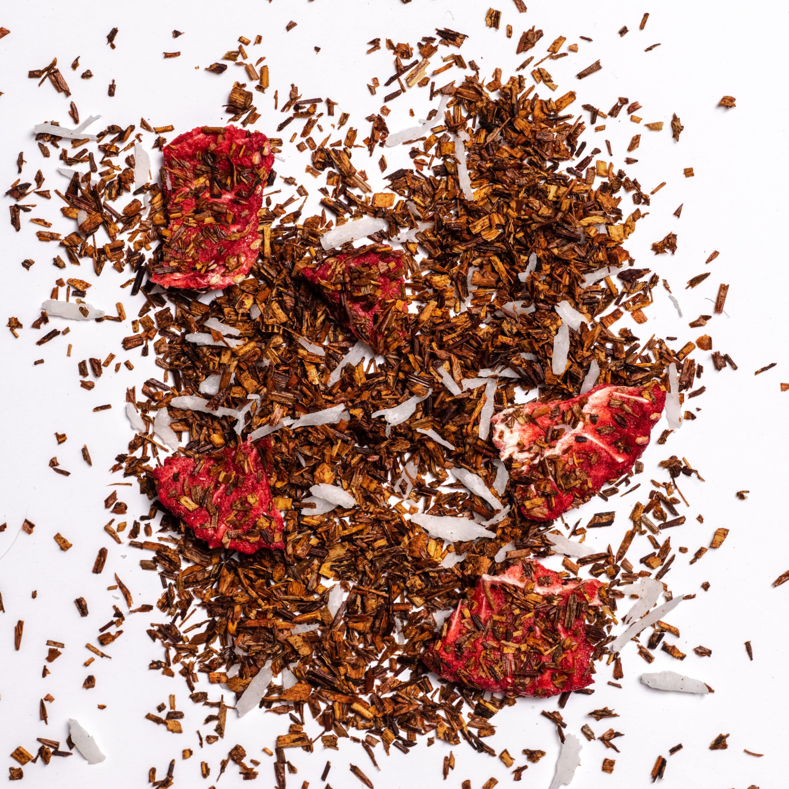 85% Rooibos*, 9% Kokosraspeln*, 3% Erdbeerscheiben*, natürliches Kokosnuss-Aroma, natürliches Erdbeer-Aroma